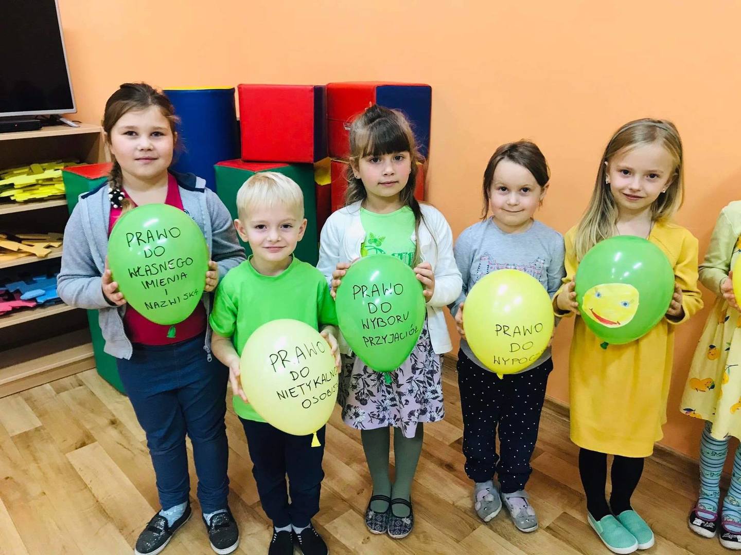 22.11. 2021 r, w tym dniu dzieci dowiedziały się jakie znaczenie odgrywa życzliwość względem drugiego człowieka, celem było uwrażliwienie na życzliwość, wzbudzenie pozytywnych emocji. Jest to apel przeciwko problemom. Dzieci mówiły sobie komplementy, przy czym towarzyszyły im kolory przewodnie – żółty i zielony w postaci ubrań, balonów i dodatków. Dzień ten został poświęcony również na omówienie praw dziecka oraz świętowanie uchwalenia Konwencji praw dziecka. Przedszkolaki otrzymały balony z zapisanymi prawami w celu utrwalenia ich i zapamiętania, do czego mają prawo.
