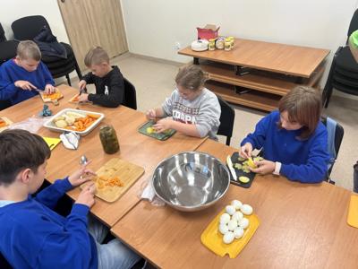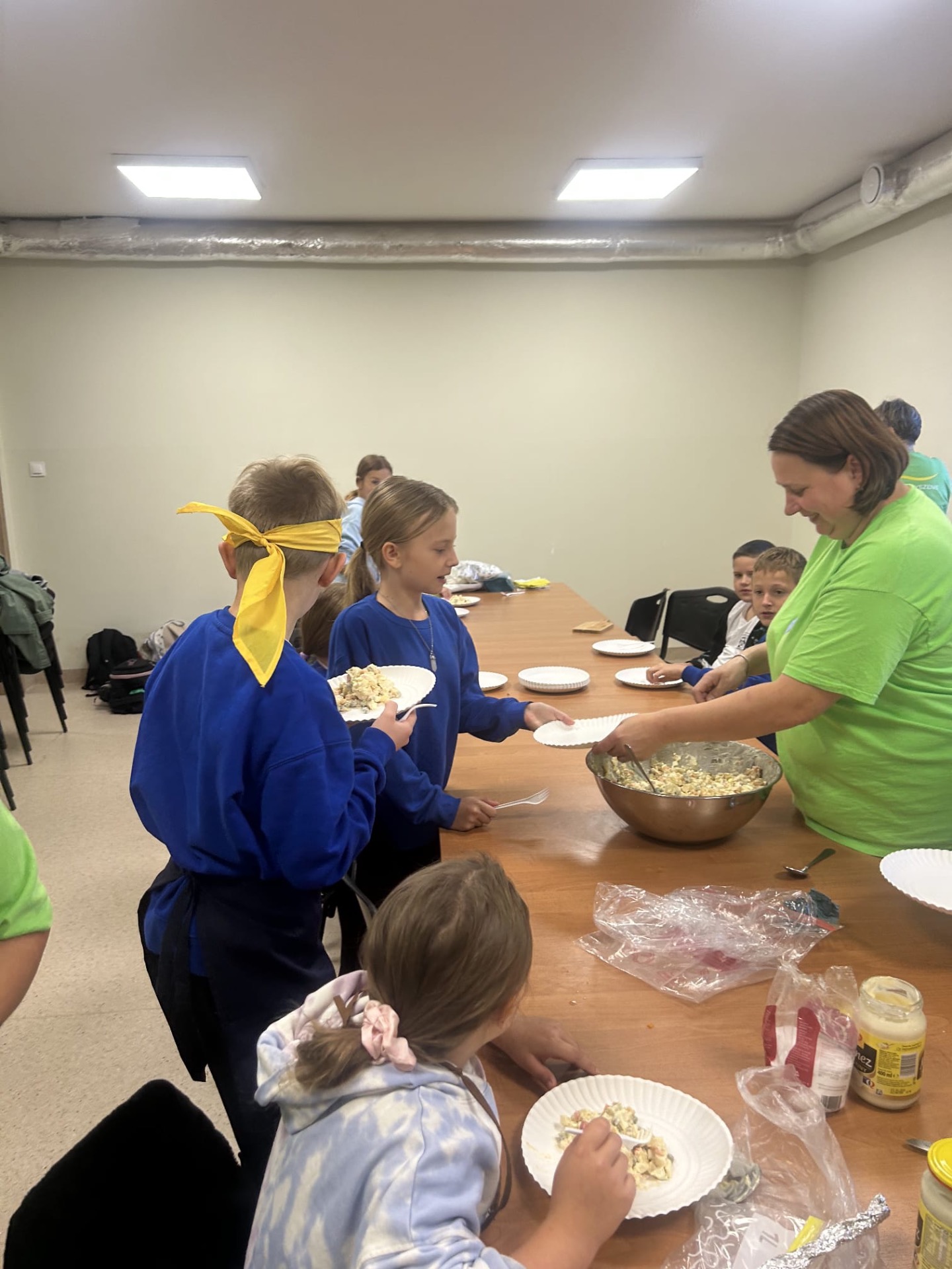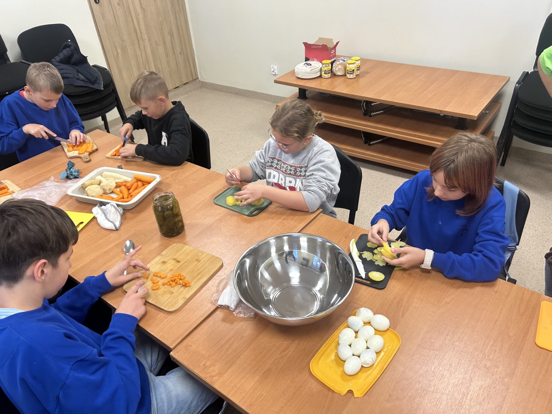 24 września w starszych klasach odbyły się warsztaty kulinarne. Podczas warsztatów uczniowie pod kierunkiem pań ze Stowarzyszenia oraz nauczycielki Pani Karoliny Józwowskiej przygotowali sałatkę warzywną. Oczywiście podczas zajęć nie mogło zabraknąć rozmowy z uczniami o wartościach odżywczych warzyw i owoców i zdrowym odżywianiu.