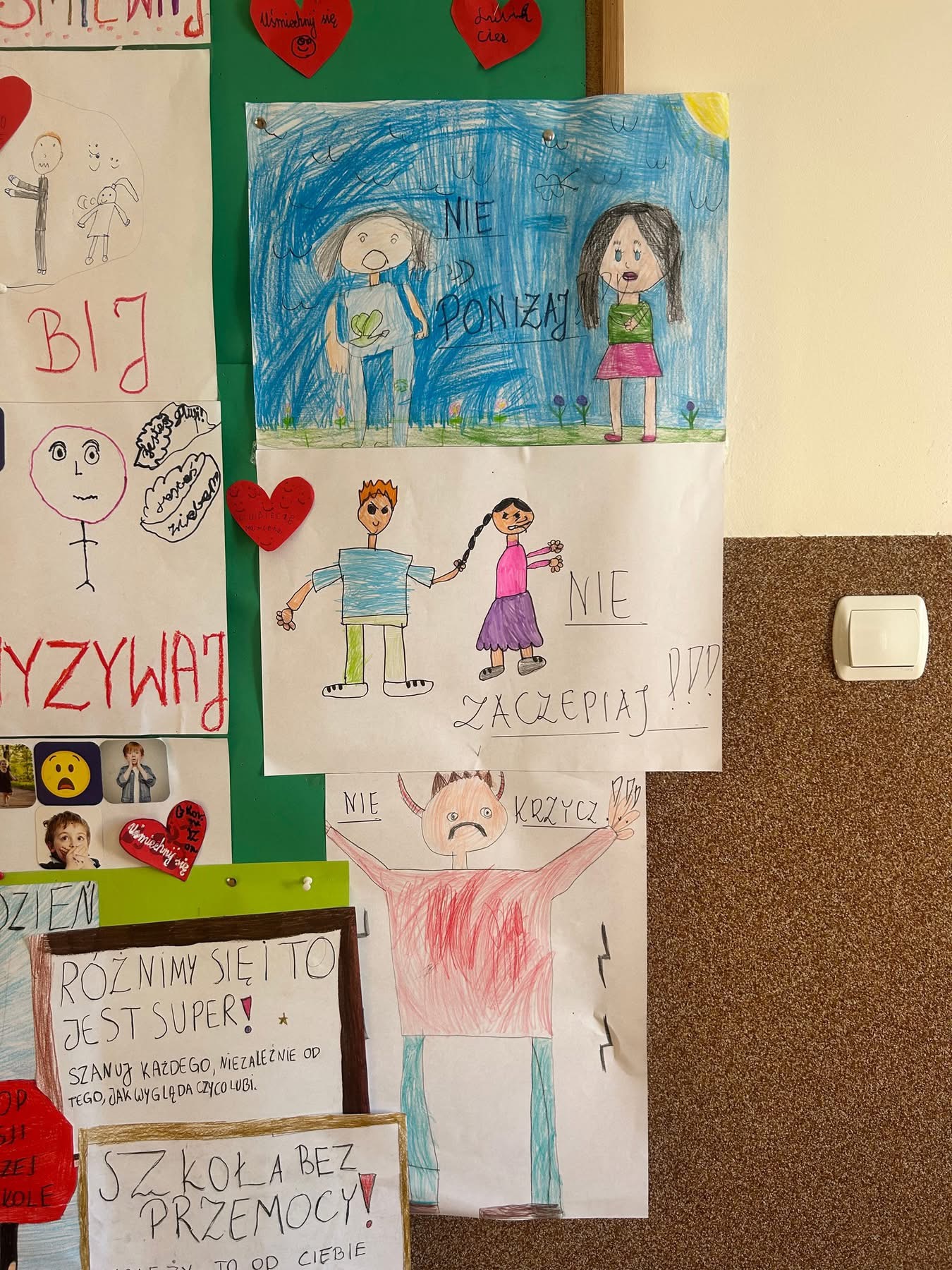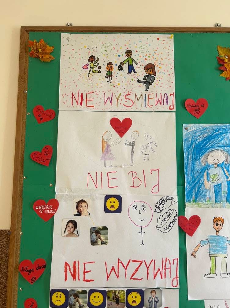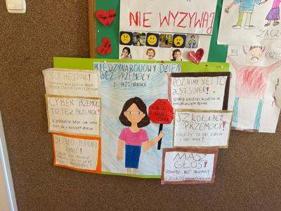 W naszej szkole zakończył się tydzień poświęcony przeciwdziałaniu przemocy i budowaniu dobrych relacji. W ramach wydarzenia uczniowie klas młodszych i starszych uczestniczyli w zajęciach, podczas których rozmawiali o wzajemnym szacunku, życzliwości i umiejętności rozwiązywania konfliktów.