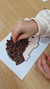Kolorowe liście, szyszki i nasiona słonecznika stały się inspiracją do wspólnej zabawy i tworzenia.