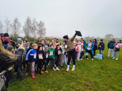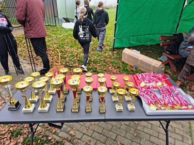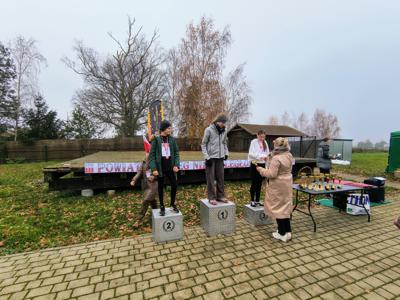 Wszyscy biegacze i marszerzy zostali nagrodzeni pamiątkowymi medalami, a najlepsi zawodnicy w poszczególnych kategoriach biegowych otrzymali puchary, które wręczyli Pani Wójt Karolina Nowak wraz z Panią Sylwią Blumkowską oraz Panem Krzysztofem Białkowskim.