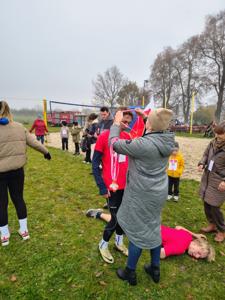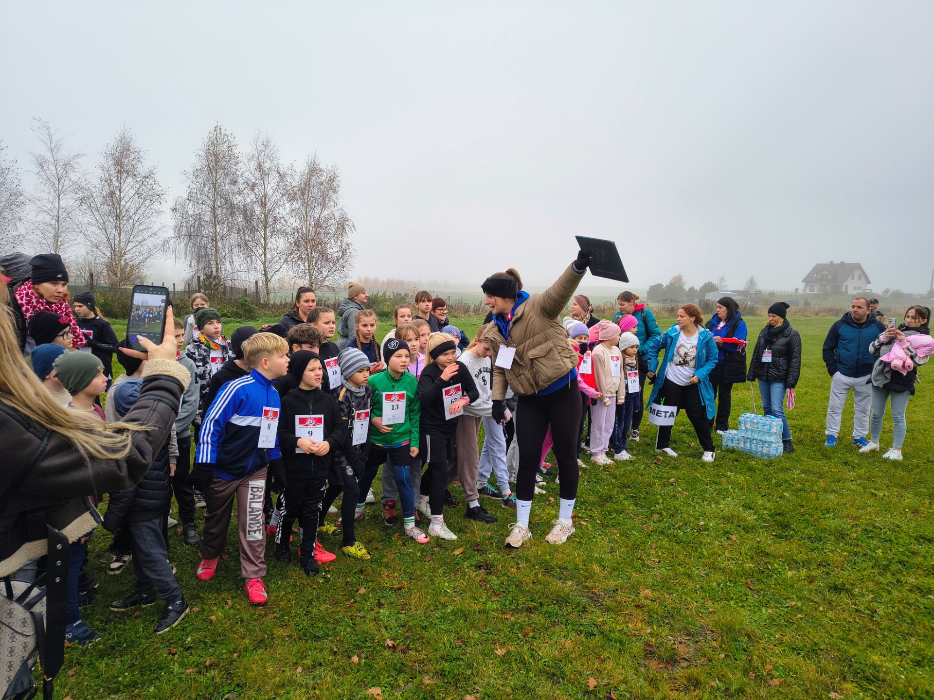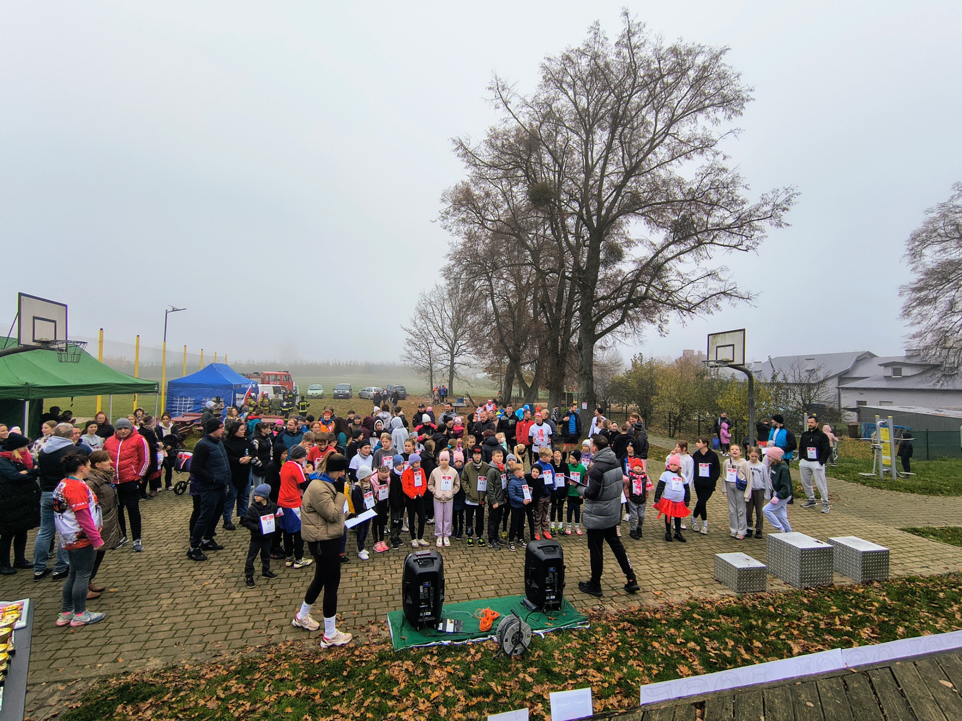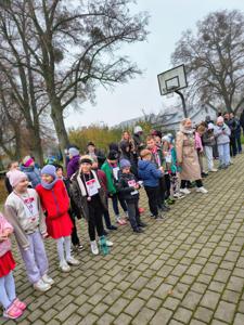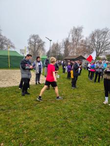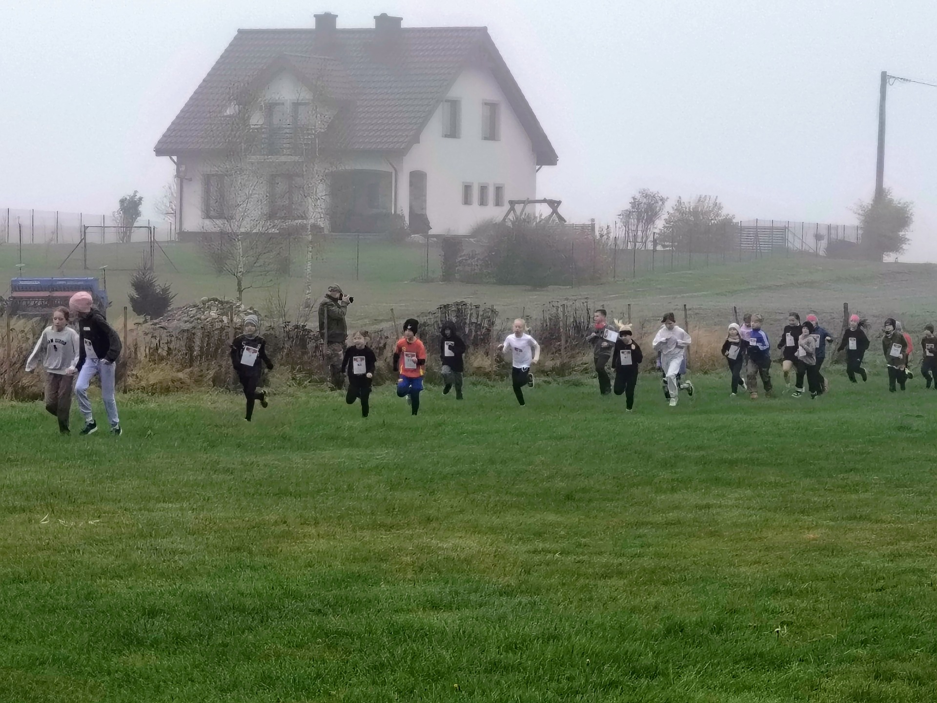Następnie przystąpiono do biegów, które profesjonalnie poprowadzili nasza nauczycielka Pani Joanna Gędłek i Pan Krzysztof Białkowski. Mimo niskiej listopadowej temperatury na linii startu stanęło ponad 130 zawodników w białych i czerwonych koszulkach i opaskach w czterech kategoriach wiekowych. W pierwszych dwóch kategoriach wiekowych uczestniczyli uczniowie ze Szkoły Podstawowej w Czarnem Dolnem, Szkoły Podstawowej w Cyganach, Szkoły Podstawowej w Gardei, Szkoły Podstawowej w Otłowcu.