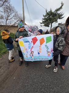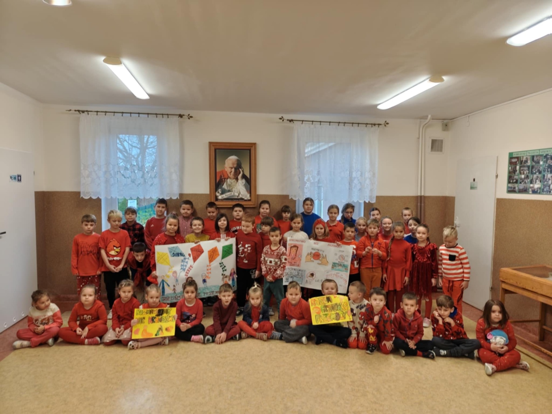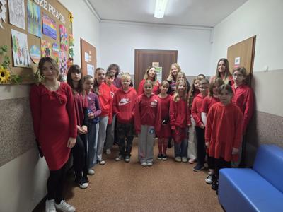 Wszystkie klasy ubrane na czerwono przygotowały wyjątkowe plakaty i wzięły udział w ulicznym happeningu, niosąc przesłanie o konieczności ochrony dzieci przed przemocą i tworzeniu bezpiecznego, pełnego wsparcia dzieciństwa.