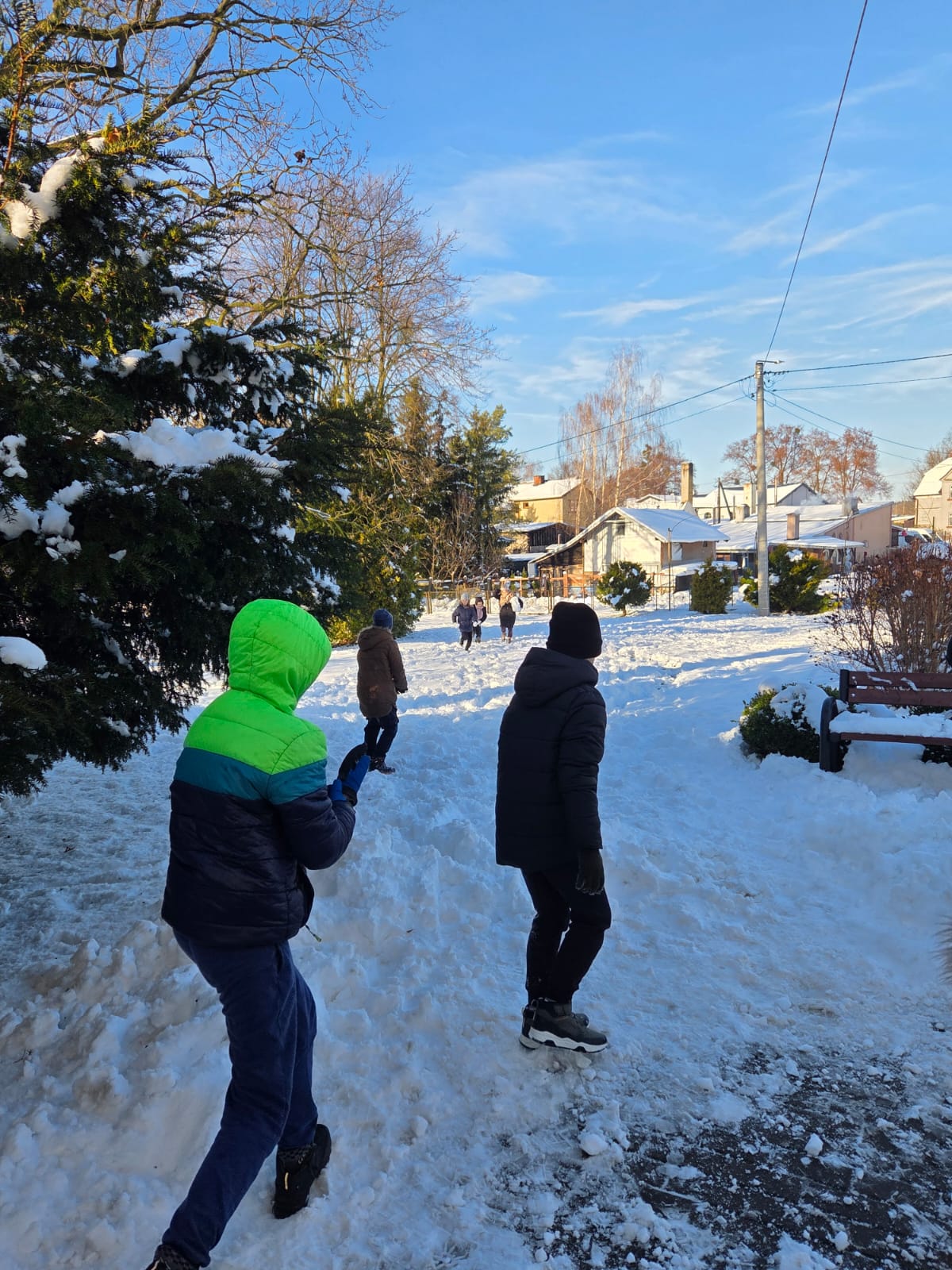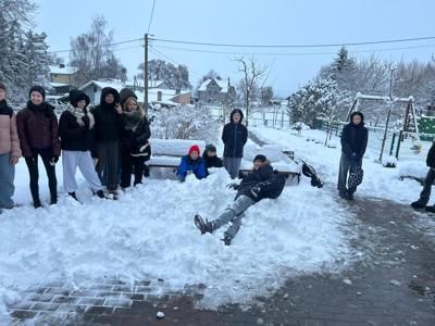 Pierwszy śnieg wywołał wśród uczniów ogromną radość. Gdy tylko szkolne boisko pokryło się białym puchem, dzieci z entuzjazmem wybiegły na dwór, aby wspólnie bawić się na świeżym powietrzu. Uczniowie lepili bałwany, tworzyli małe śniegowe fortecy i toczyli ogromne kule, które stawały się częścią zimowych budowli. Nie zabrakło także aniołków na śniegu oraz zabawnych śnieżnych wyzwań.