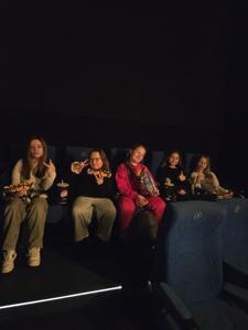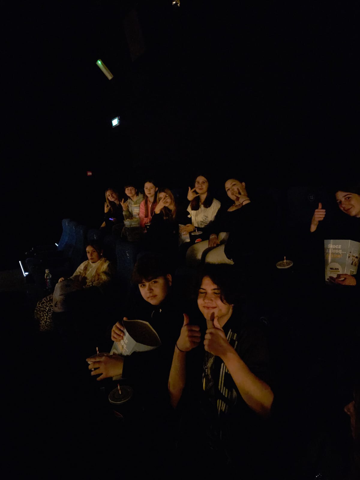 Uczniowie zebrali się pod szkołą o wyznaczonej godzinie, po czym wspólnie udali się autokarem do kina. Seans przebiegał w przyjemnej i spokojnej atmosferze.