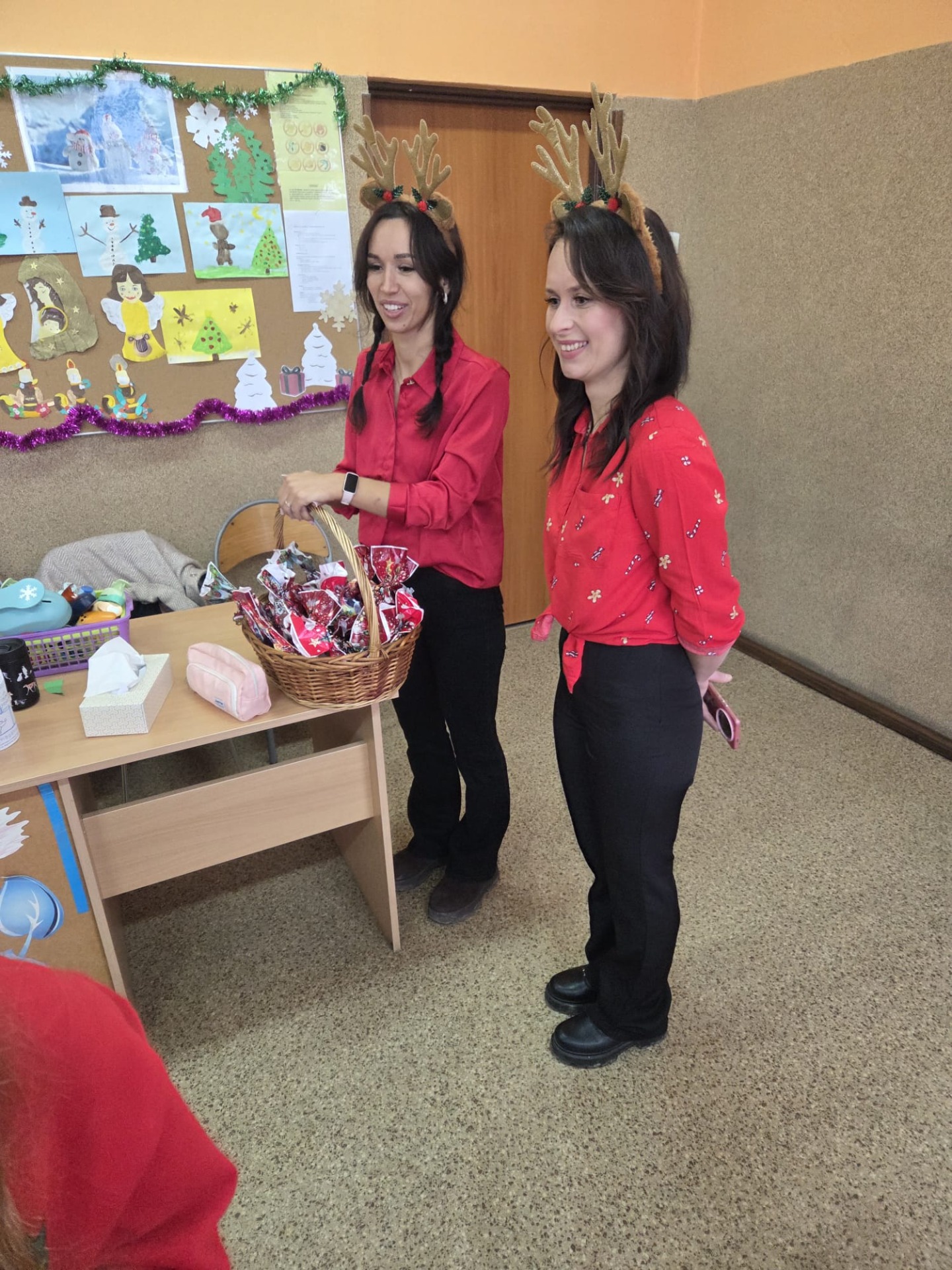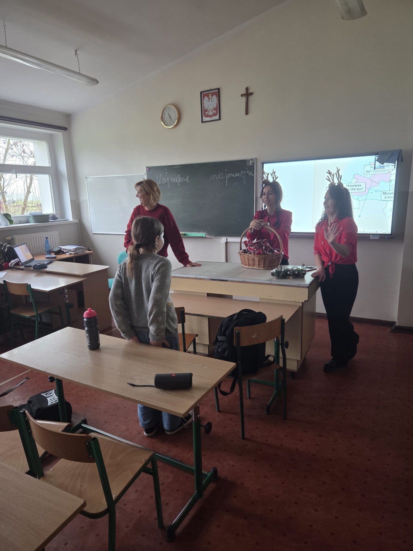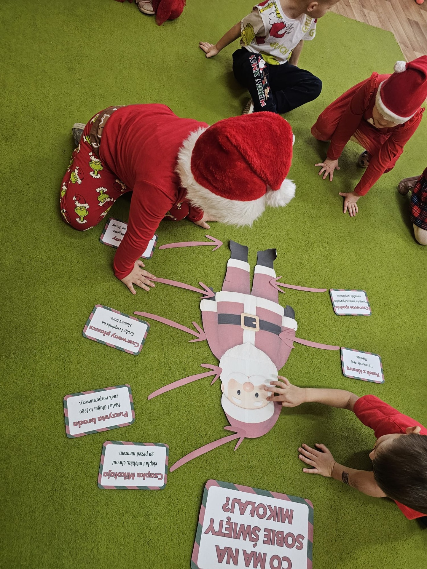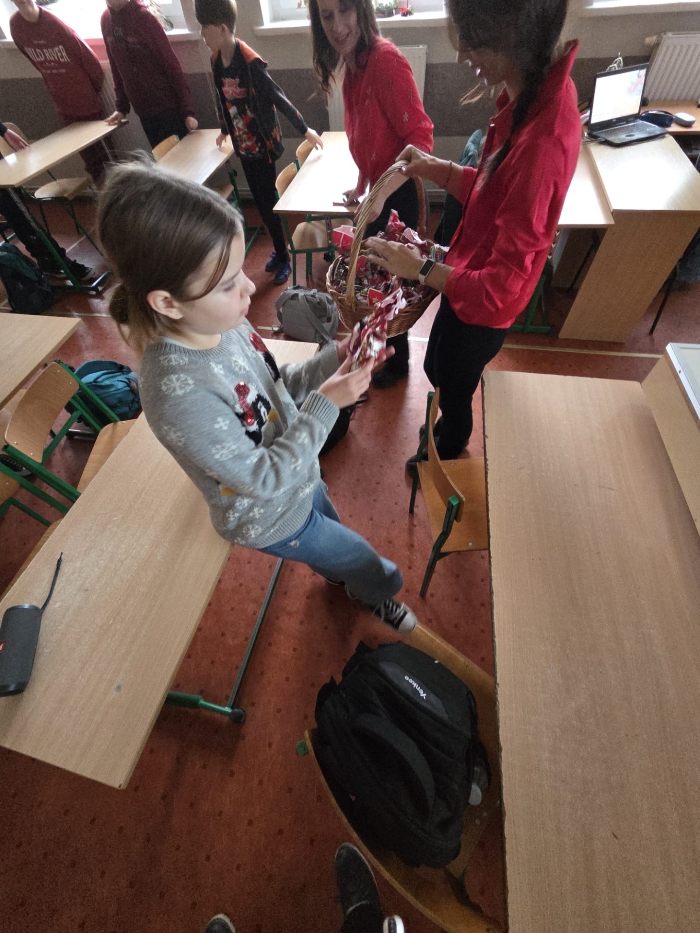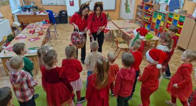 Podczas przerw uczniowie wspólnie kolędowali na szkolnych korytarzach. Wszyscy byli ubrani na czerwono, mieli mikołajkowe czapki oraz świąteczne akcesoria, co nadało całej uroczystości wyjątkowo radosny i magiczny, świąteczny klimat.