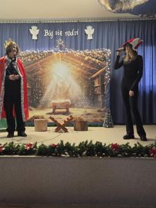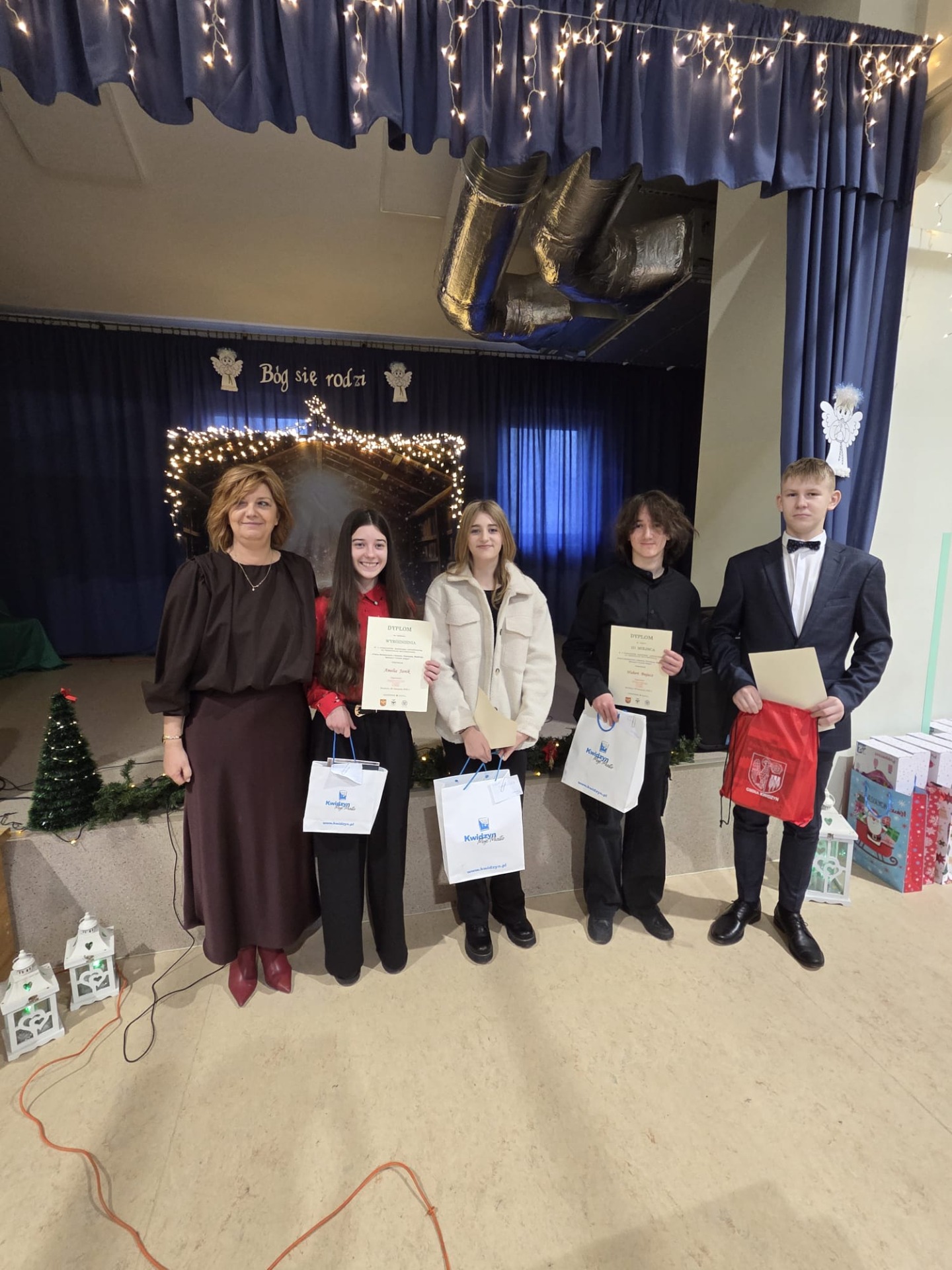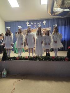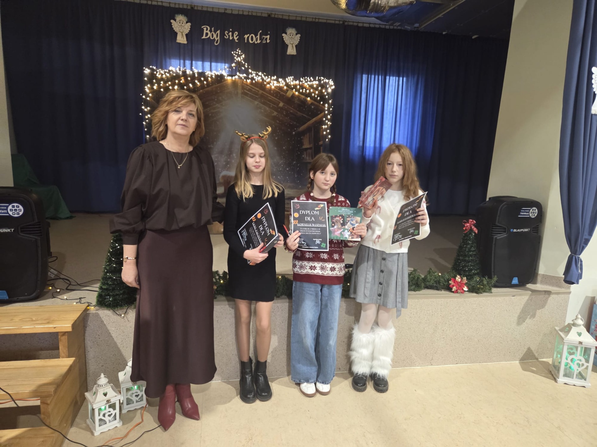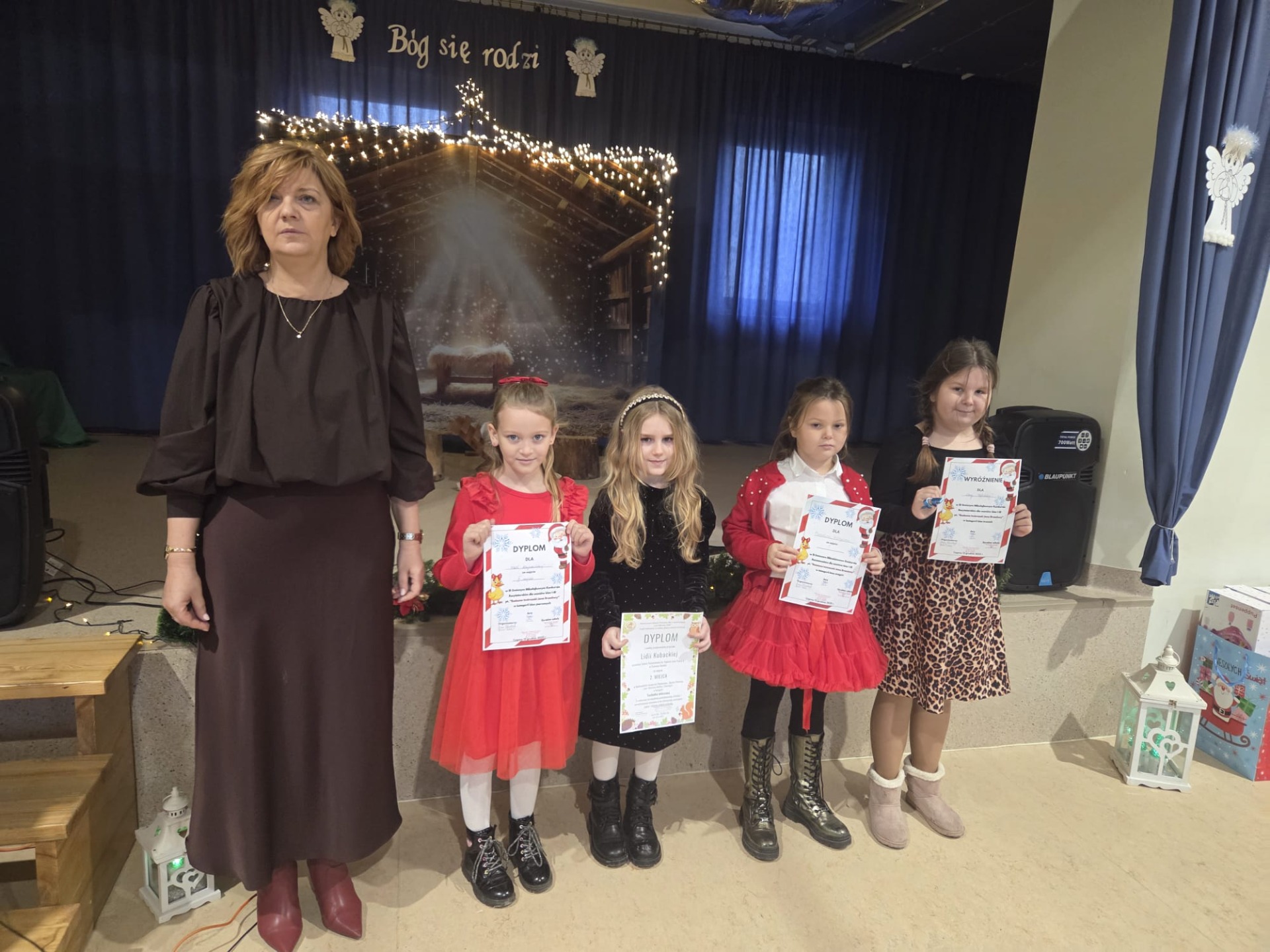 W dniu dzisiejszym odbyły się jasełka w wykonaniu uczniów klas III, IV i VII. Po występie małych aktorów zaprezentowana została projekcja tańca świątecznego w wykonaniu dziewczynek z koła tanecznego. Następnie głos zabrała Pani Dyrektor, która złożyła wszystkim zebranym świąteczne życzenia oraz wręczyła uczniom nagrody zdobyte w konkursach.