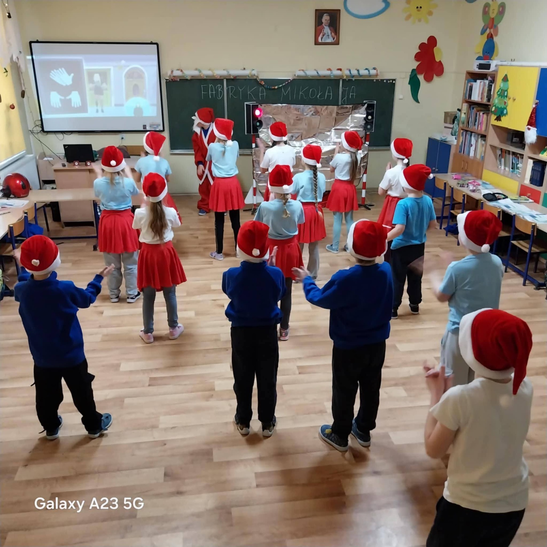 Przedstawiamy Państwu również rozwiązaną zagadkę Świątecznej Fabryki Świętego Mikołaja w wykonaniu naszej szkoły: