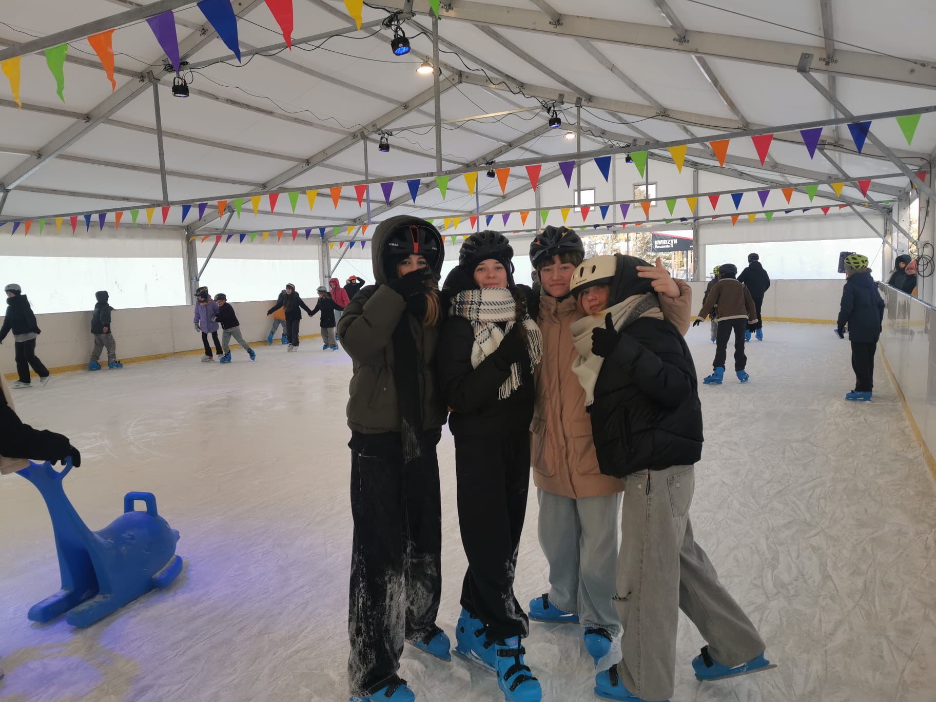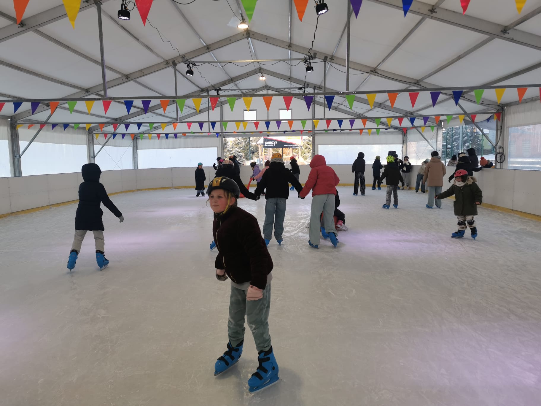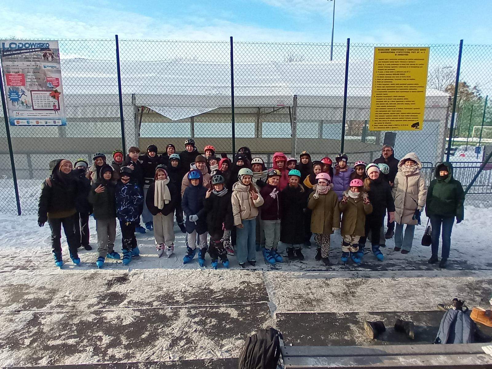 Piątkowe popołudnie 9 stycznia 2026 r. chętni uczniowie klas IV-VIII wraz z wychowawcami spędzili na lodowisku w Kwidzynie. Celem wyjścia było aktywne spędzenie czasu wolnego, promowanie zdrowego stylu życia oraz integracja. Po przybyciu na miejsce uczniowie wypożyczyli łyżwy, założyli kaski ochronne i przygotowali się do jazdy. Przed wejściem opiekunowie przypomnieli zasady bezpieczeństwa obowiązujące na lodowisku. Następnie wszyscy rozpoczęli jazdę. Uczniowie bawili się świetnie – jedni doskonalili swoje umiejętności, inni stawiali pierwsze kroki na lodzie. Trzeba przyznać, że bardziej doświadczeni pomagali tym, którzy dopiero uczyli się jeździć. Atmosfera była przyjazna, pełna śmiechu. Po zakończeniu jazdy uczestnicy oddali sprzęt i wrócili do szkoły. Wycieczka była udana i sprawiła wszystkim wiele radości, dlatego uczniowie wrócili zadowoleni i chętnie wzięliby udział w podobnym wyjściu ponownie.